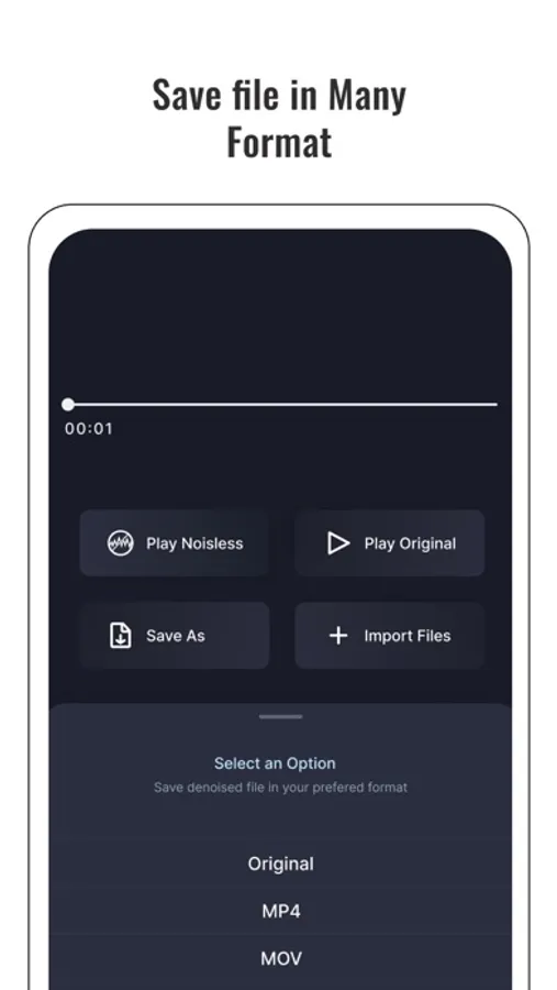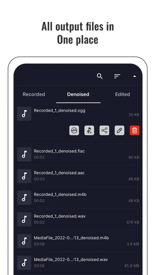 It also features a sound recorder inside it along with the noise-reducing/canceling feature. It even lets you save your reduced audio in different formats like AAC, MP3, WAV, M4A, M4B, FLAC, AC3, and OGG. It’s something a perfect noise reduction/cancellation app must include in its features.