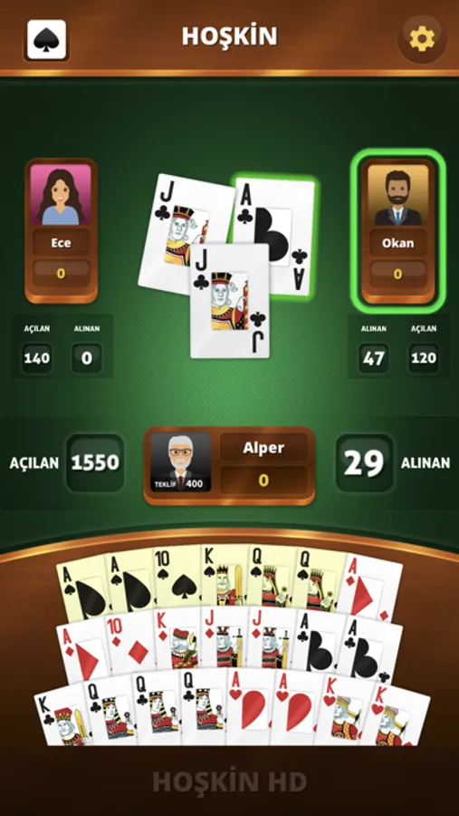 Hoşkin HD, batak ve king oyununa benzeyen bir kart oyunudur.