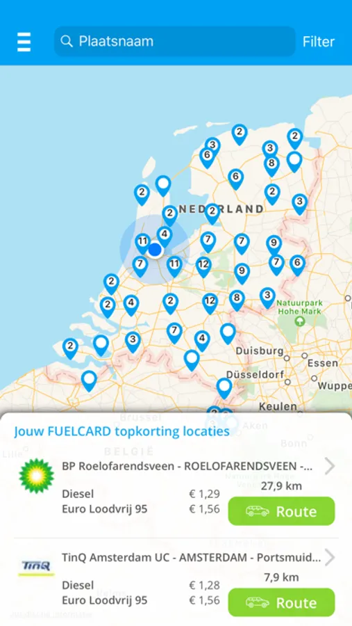 Met de FUELCARD-app vind je snel en gemakkelijk de meer dan 500 tankstations binnen ons netwerk. Er is dus altijd wel een tankstation bij jou in de buurt. De app beschikt over handige functies waardoor jij alles wat je nodig hebt bij de hand hebt. Door de uitgebreide filtermogelijkheden is zoeken naar faciliteiten per tankstation bijvoorbeeld heel eenvoudig. Daarnaast kun je via de handige navigatiefunctie moeiteloos bij jouw favoriete tankstation komen. Én je ziet direct jouw meest actuele brandstofprijs. Download dus snel de FUELCARD-app en ga altijd onbezorgd op weg!