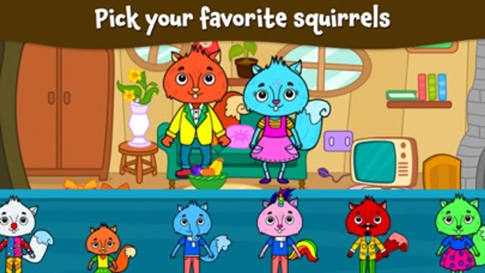 Touch, drag, interact and use your creativity while you play in your huge Squirrel House! It's going to be a lot of fun!