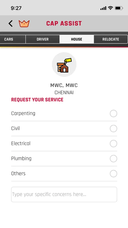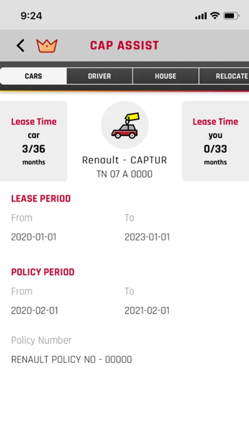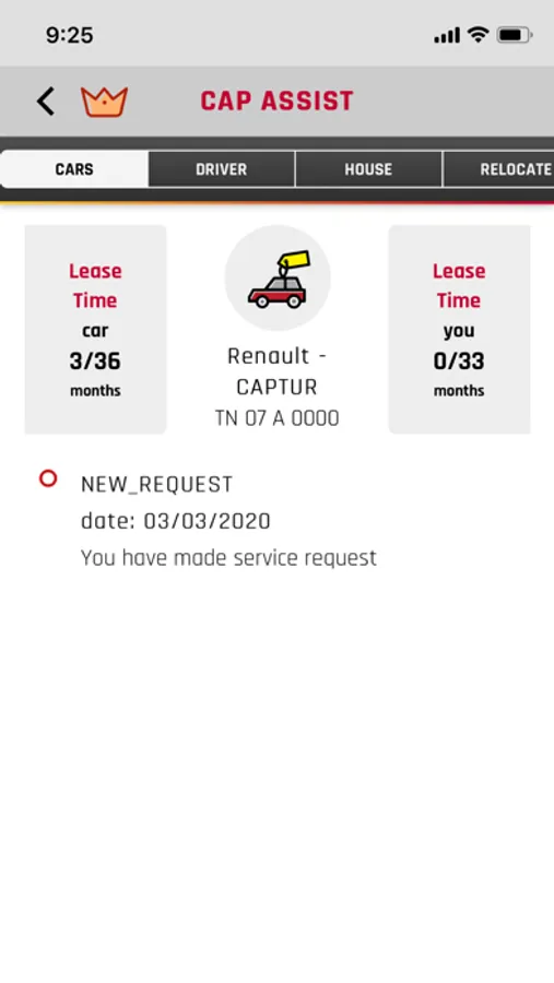 The CapAssist Module can be used by employees for raising Grievance if any, for the company provided facilities.The user can raise request on Car Maintenance, Driver Concern, Driver Feedback, House maintenance and Relocation.The user can also track the current status of the request and also provide feedback after the request is completed.