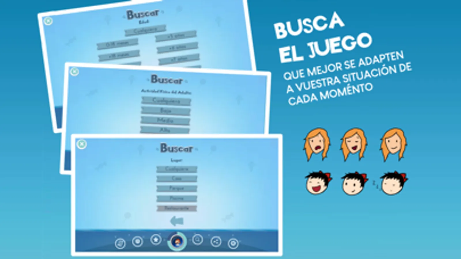 Hazte Pequeño cuenta con un sistema de filtros de selección para que nos facilitará localizar aquellos juegos que mejor nos encajen en cada momento. Podremos indicar la edad de nuestros hijos, el tiempo libre con el que contamos para jugar con ellos, en qué entorno nos encontramos exactamente (dentro de casa, un restaurante, la playa, un parque etc.). Podremos además elegir el nivel de actividad física que tanto nuestros hijos como nosotros mismos queramos dedicarle a cada juego.