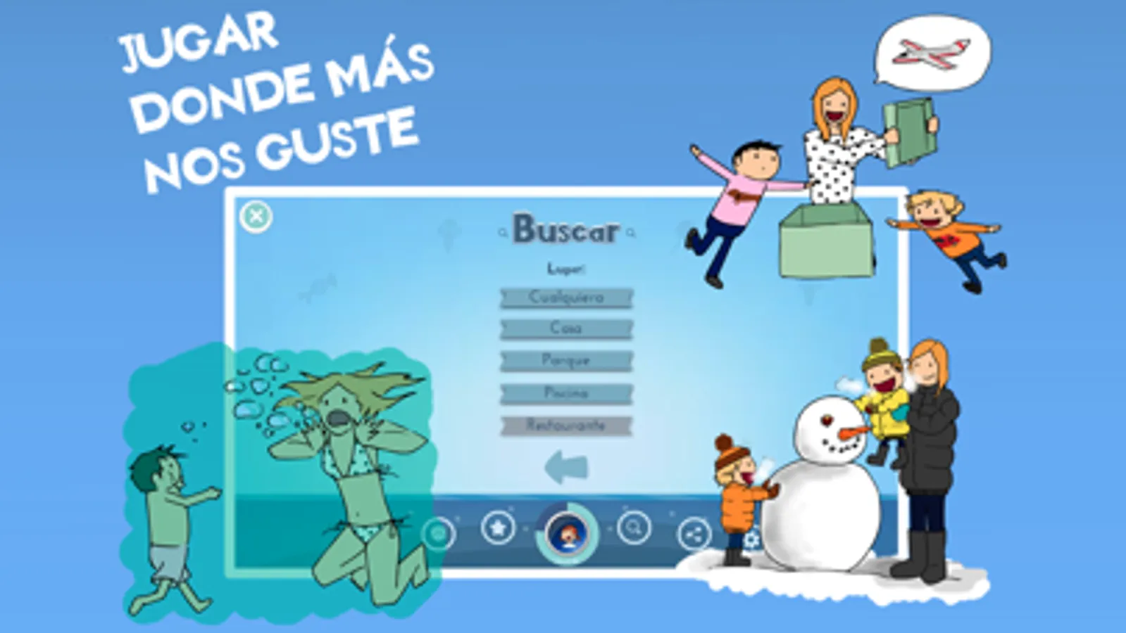 • Juegos divertidos para jugar en distintos entornos (parque, agua, nieve, habitación, hora de comer, para activarles, para relajarles, manualidades, juegos caseros etc)