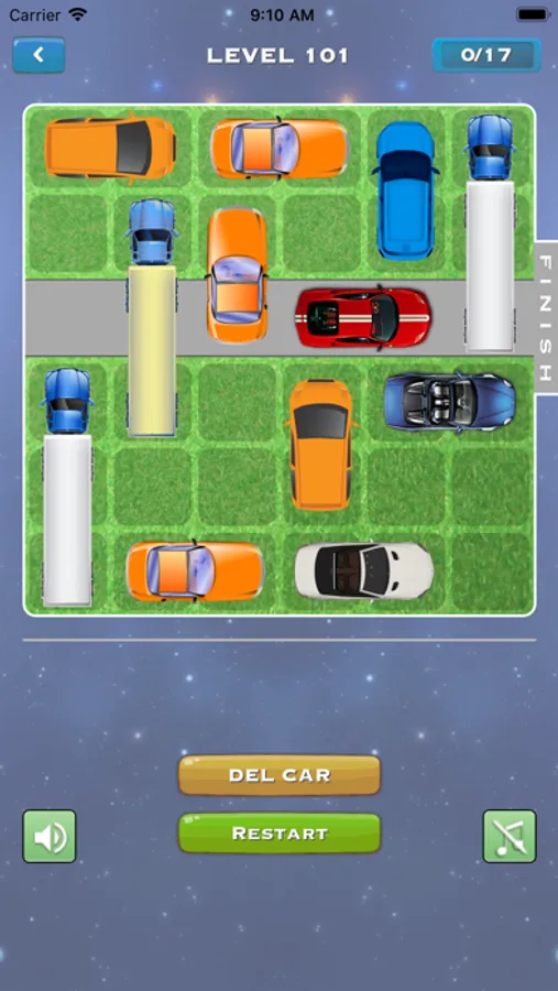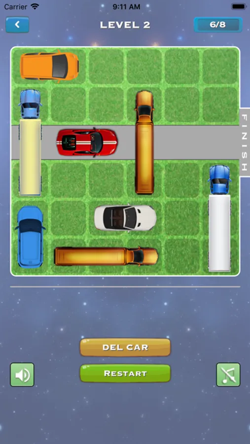 The goal of the game is to move the red car to the finish line, removing other cars in its path.