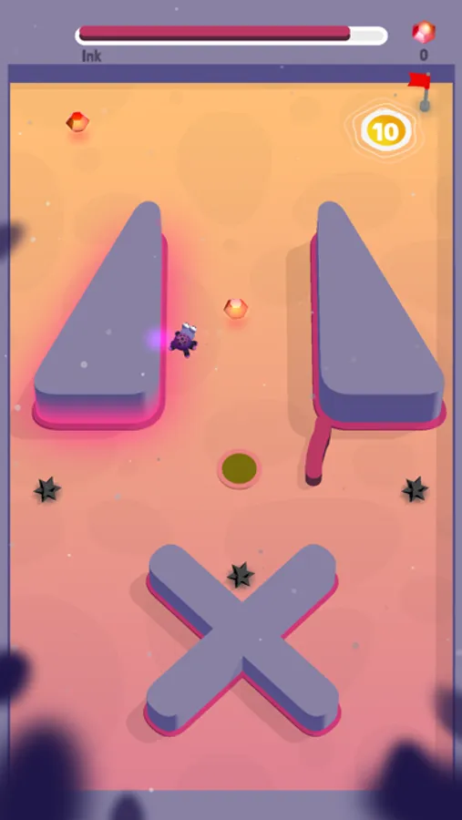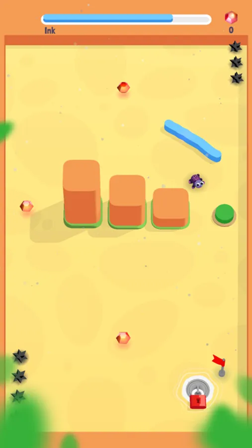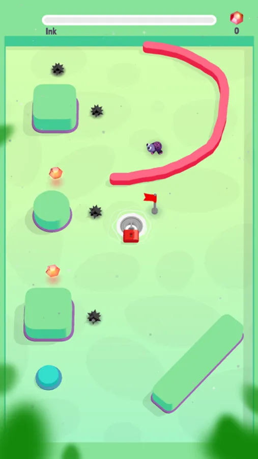 Draw the line in front of him and guide him to his home. But be careful and don't hit the spikes.