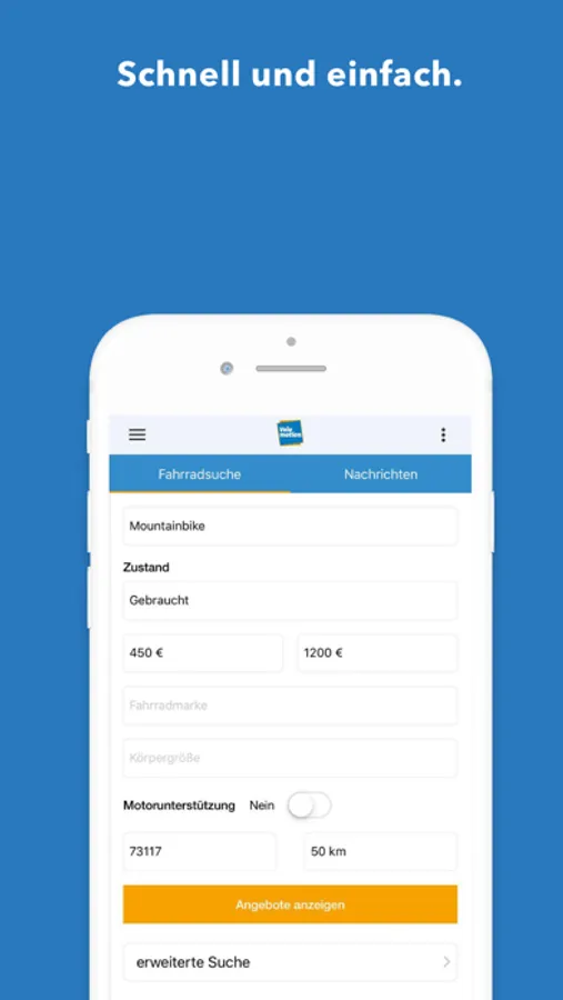 Oder du suchst ein neues Rad – neu oder gebraucht, vom Händler oder privat? Ganz egal ob E-Bike oder Kinderrad, Mountainbike, Stadtrad, Gravel- oder Rennrad – das riesige Angebot an Rädern von Händlern und Privatanbietern auf Velomotion.de wird dich überzeugen. Dabei kannst du deine Suche auf deinen Umkreis beschränken und Suchkriterien (Motor, Akku, Ausstattung) exakt definieren. Deine Suchergebnisse kannst du speichern und vergleichen. Den Anbieter kannst direkt aus der App kontaktieren oder anrufen.