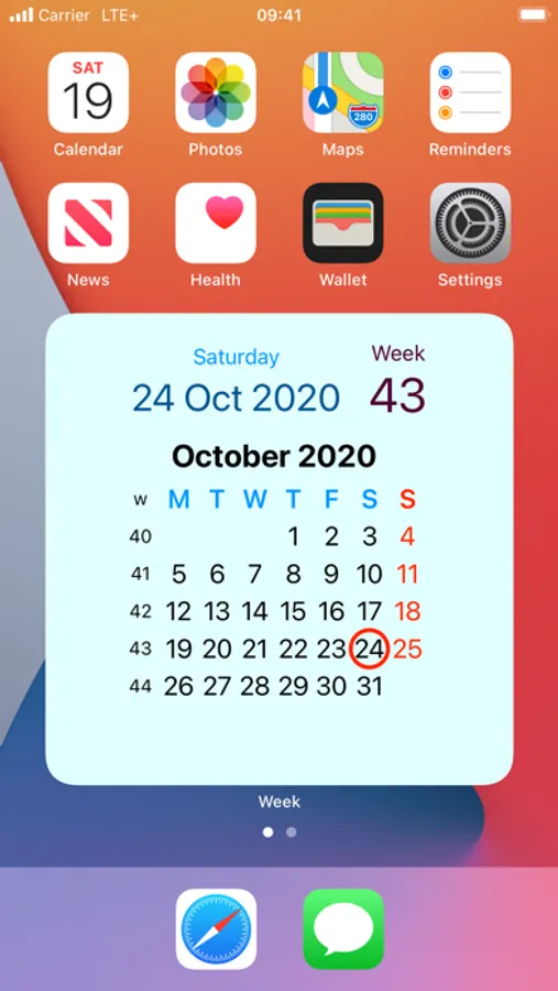 Add widgets in a size your choose to any of your home screens, or the Today view. This way you can have the date and week information visible at all times directly on your main screen.