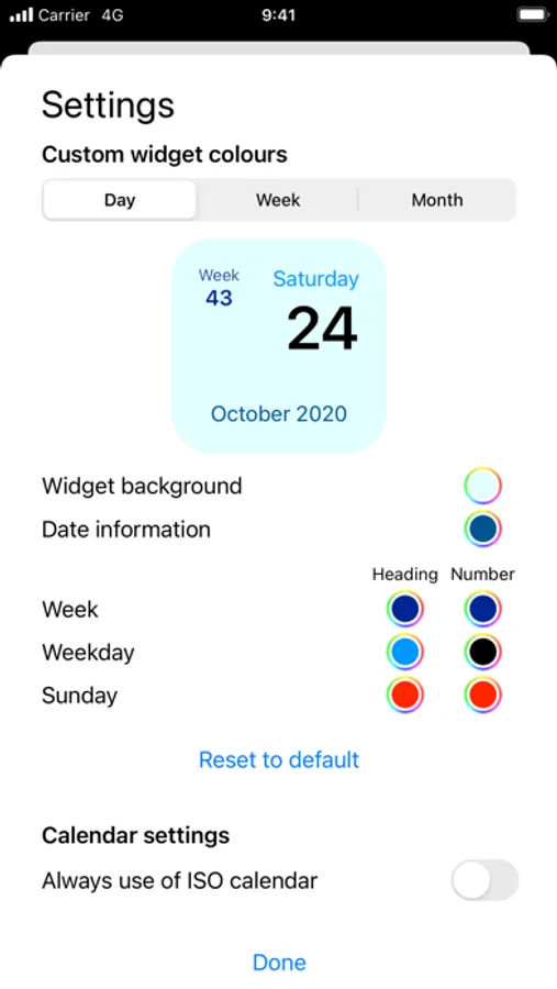 The colours of the widget can be customised in the app's Settings view. Choose colours for each of the components of the widget.