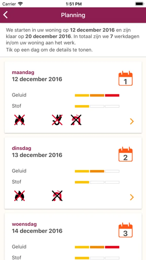 Weg met het papieren boekje dat u kwijt kunt raken. Nu heeft u alle informatie over uw renovatie of groot onderhoud vertrouwd bij u op de telefoon of tablet. Blader bijvoorbeeld door de scheurkalender om te zien wat er gaat gebeuren, wat u kunt doen om het de mensen van de bouw gemakkelijker te maken of welke overlast u kunt verwachten.