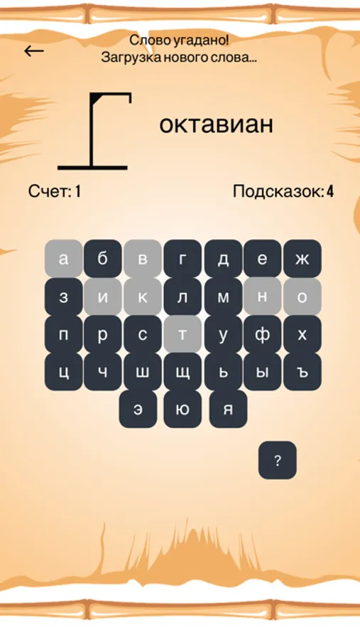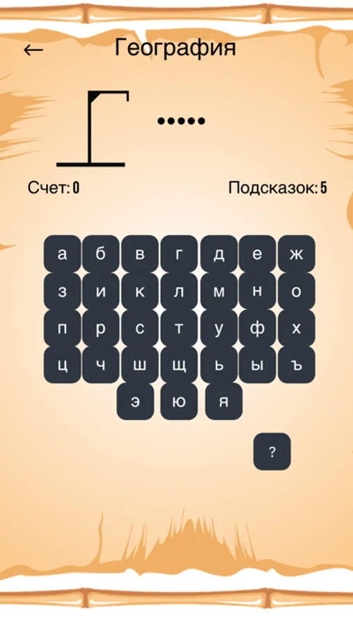 Игра Виселица - старая добрая игра по угадыванию слов! Отгадывайте слова из пяти категорий, ставьте рекорды и добивайтесь успеха! Ну, а если не получается - пользуйтесь подсказками ))) Желаю Удачи!