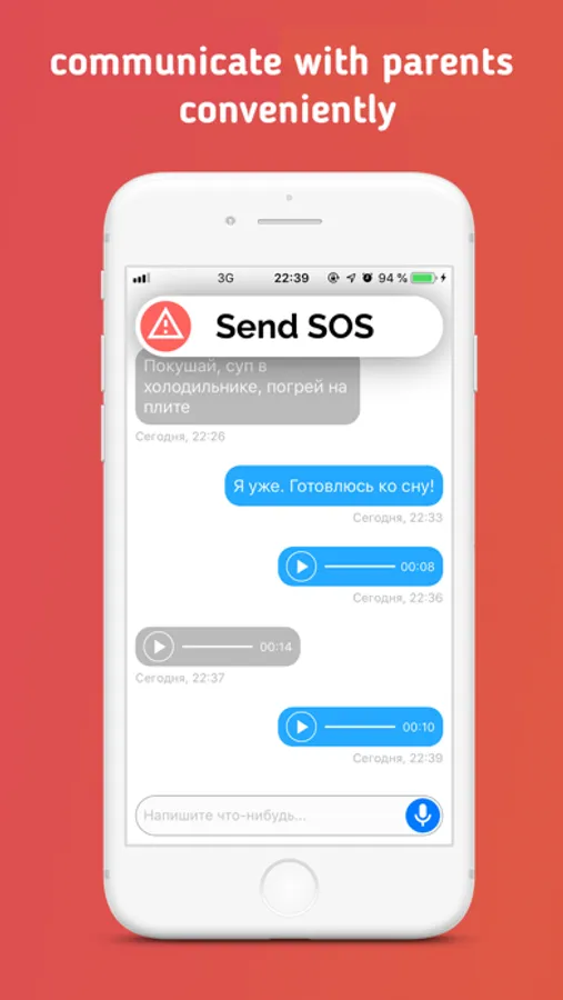 If you suddenly get into an emergency situation the "Send the alarm" button in our application will help you! Press it if you're scared or you need help and your parents will immediately see a message about it and will be able to help you!