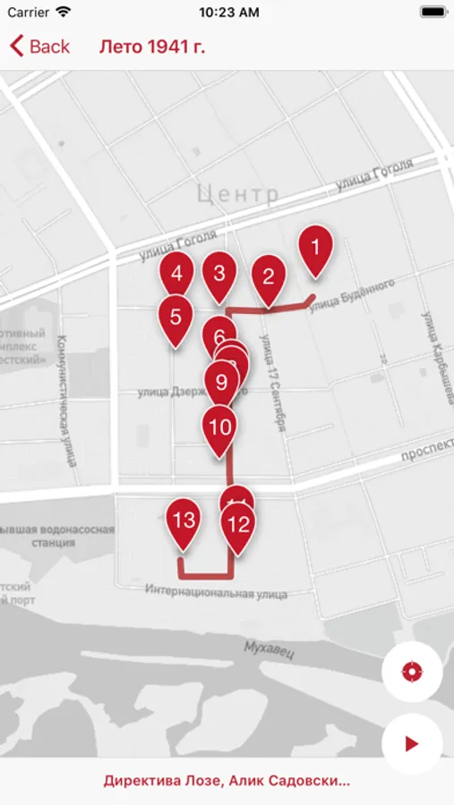 Аудиоспектакль дает возможность зрителю в свободном режиме перемещаться по предлагаемому маршруту, руководствуясь данным приложением. В определенных точках города зритель услышит истории, связанные с этим местом (напр. территория гетто, бывшая синагога и т.п.), а также имеет возможность просмотра текстов, фотографий. Сам город является пространством спектакля. Улицы, здания, дворы становятся сценой, на которой звучат голоса из прошлого. Театр КХ предлагает зрителю/ слушателю “погрузиться” в историю, а также увидеть, как через облик сегодняшнего города проступают очертания исчезнувшего, старого Бреста.