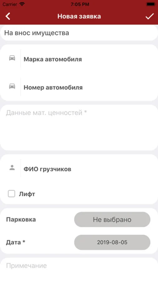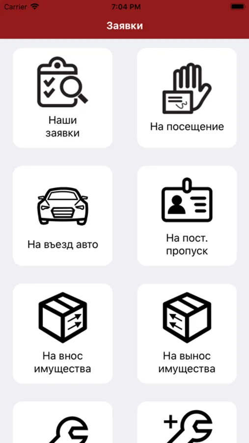 Заявки на посещение, внос/вынос материальных ценностей, на изготовление пропусков, на производство работ для различных служб управляющей компании