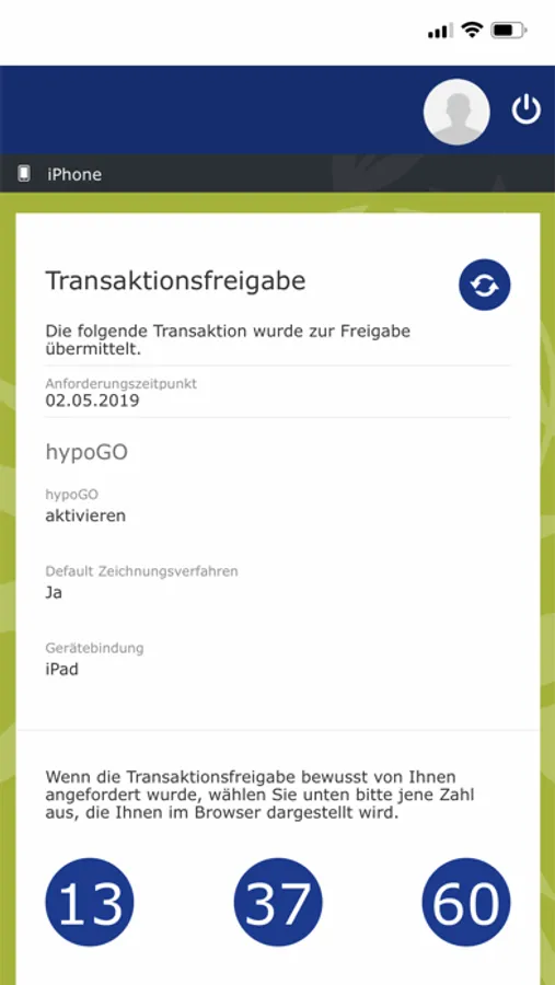 Sobald eine Anforderung in der App bereitsteht, erhalten Sie eine Push-Mitteilung. Bestätigen Sie einfach in der hypoGO App jene Kontrollziffer, die Sie in hypo@home angezeigt bekommen.