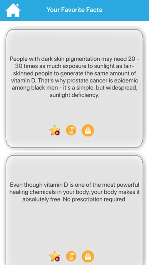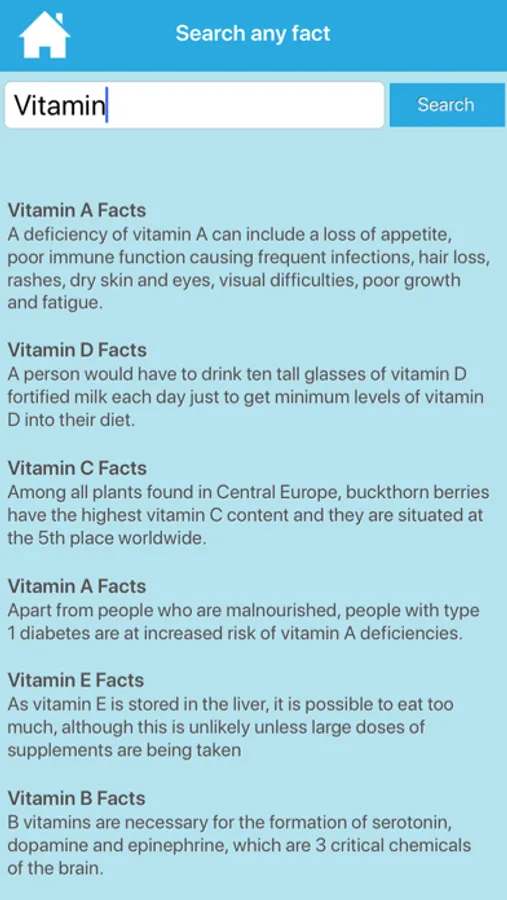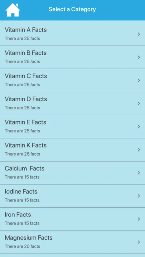 Our app has collection of interesting,fun and educational nutrition facts that will blow your mind. You can improve your knowledge and explore the about nutrient, neatly placed in different categories.