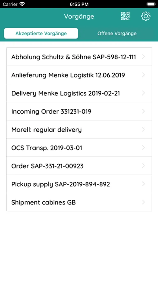 2. Scannen Sie den QR-Code, den Sie von der Spedition, an der Pforte oder am Anmeldeterminal zum bevorstehenden Transport bekommen.