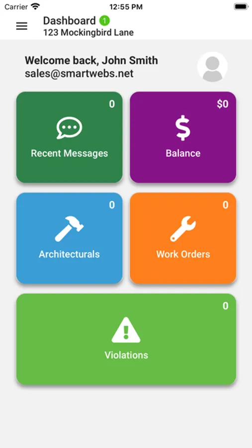 Homeowners can quickly view all HOA-related activity for their property including open violations, architectural projects, work orders, amenities, community rules, and more.