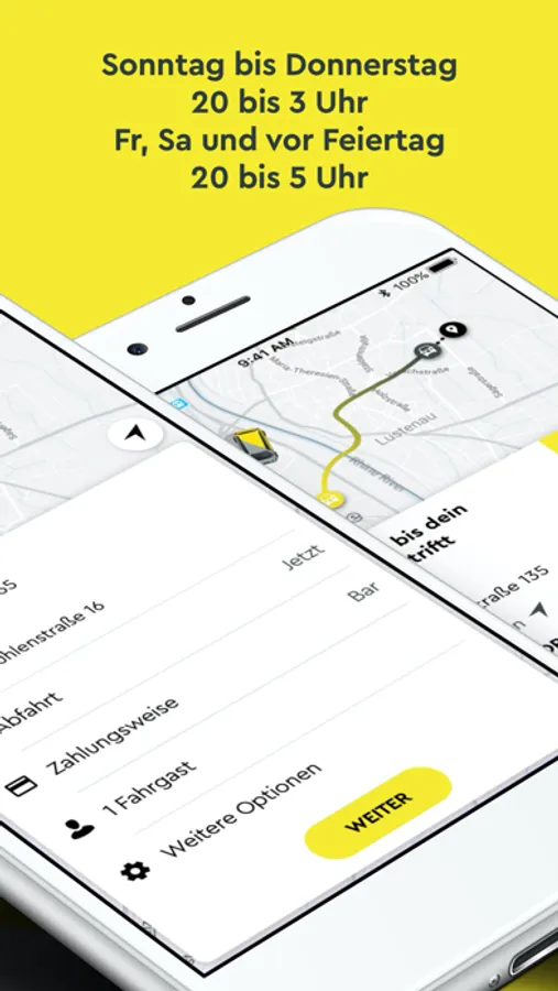 Sobald wir einen passenden Fahrer für deine Anfrage gefunden haben, kannst du deine Fahrt buchen. Per App kannst du live mitverfolgen, wo genau sich dein Fahrzeug auf dem Weg zu dir befindet.