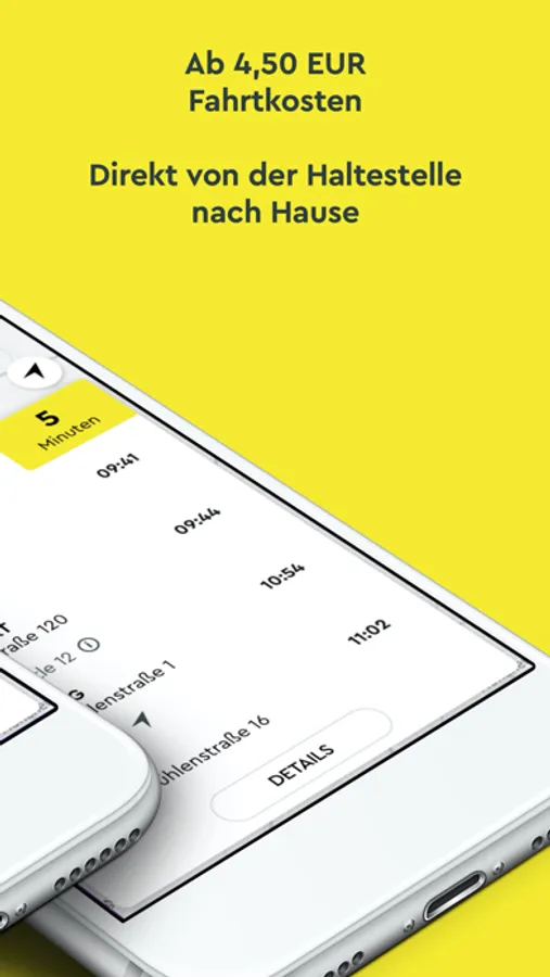 Wir zeigen dir sofort, welches Fahrzeug dich wann und wo abholen kann. Du wirst von einer Haltestelle abgeholt und wir bringen dich von einer Haltestellen zur anderen. Es kann dabei nicht ausgewählt werden, welche Haltestelle punktgenau übernommen wird – aber sei dir sicher, wir finden immer den schnellsten Weg für dich!