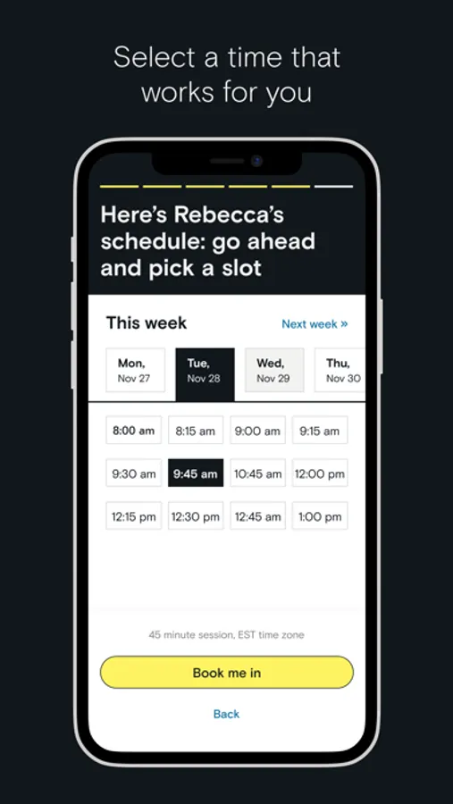 Using the EZRA app you’ll be able to schedule convenient time slots that work for you and meet your coach right there in the app using a high quality video connection. You choose your coach, your time slots and your goals – putting you in charge of your career development.