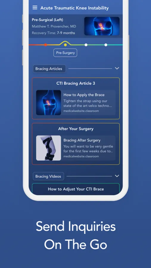 -Have access to 100s of videos that directly correspond to your diagnosis including guidance on medications, bracing, nonoperative therapy, perioperative planning, physical therapy, wound care, and more