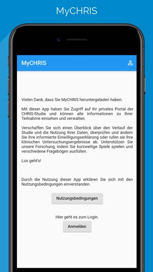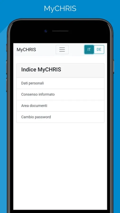 This is MyCHRIS, the official app of the CHRIS study from EURAC Research. The app allows you to access your private area of the CHRIS study and manage your participation data.