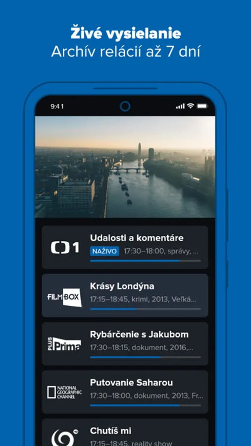 - Živé televízne vysielanie s možnosťou prehrania od začiatku
