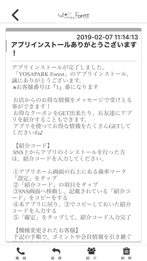 YOSA ForestのアプリをSNSを通じてお友達に紹介する事ができます。