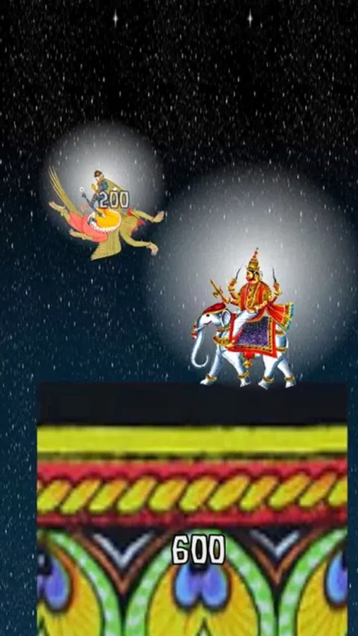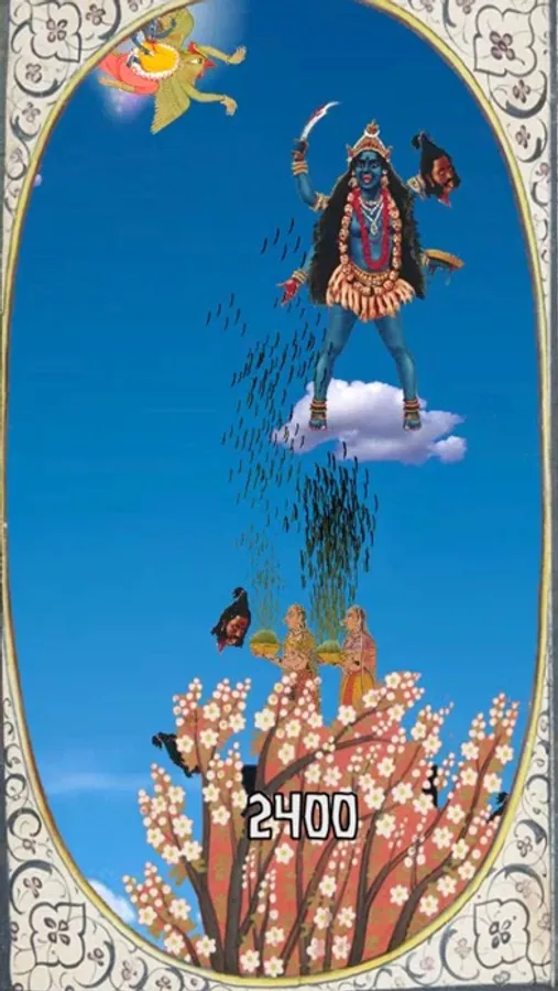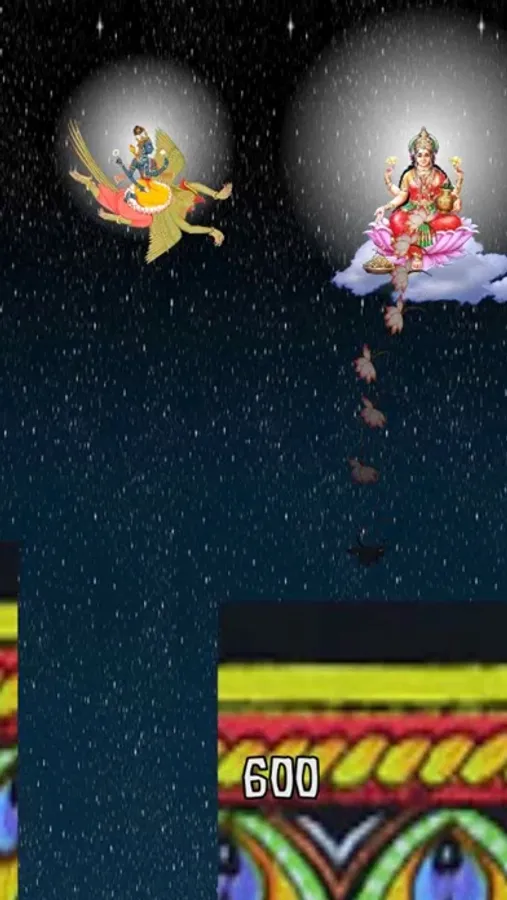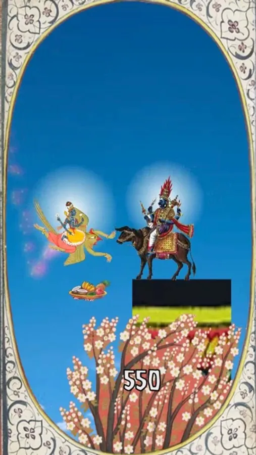 Lord Vishnu rides Garuda. They have many adventures together, and are great friends. In this game, Lord Vishnu is looking for his sweet bride, Lakshmi. Together Lord Vishnu and Garuda will encounter Hanuman the Monkey King, Lord Ganesha, and a very grumpy Kali Ma. Please remember to feed Garuda often. Avoid all obstacles, and unlock levels and new characters as you go.