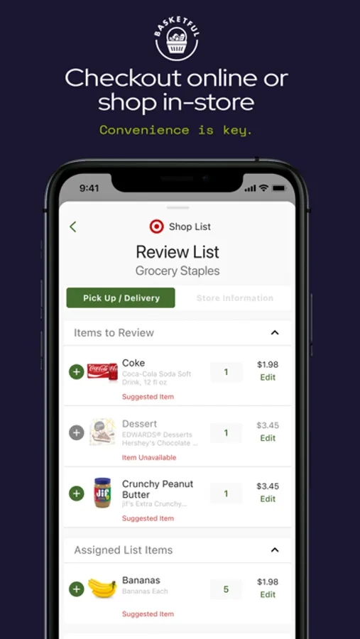 Easily create, share, and shop your grocery lists while saving time and money! Simplify with quick add & remove, sales & pricing from your local stores, and easy list sharing. Shop your list in-store, or online using local store checkout for pickup and delivery. Let Basketful take the headache out of planning and shopping!
