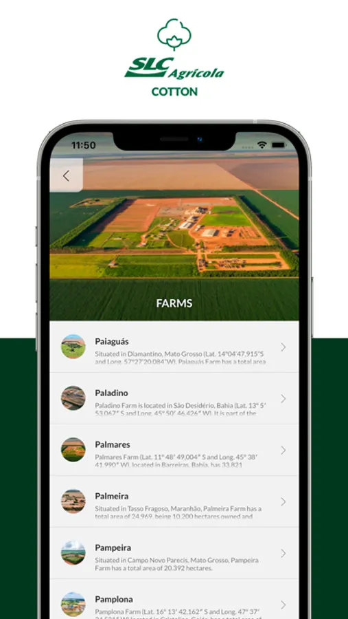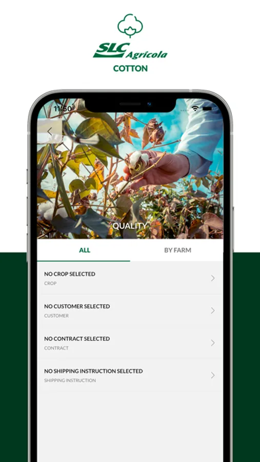Trough the app SLC Cotton the clients that bought cotton lint from SLC Agrícola will be able to see the quality data of the cotton that has been applied to its contracts, as well as the updates of the status of every shipping instruction.
