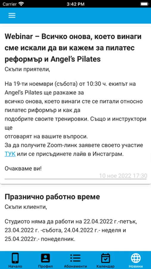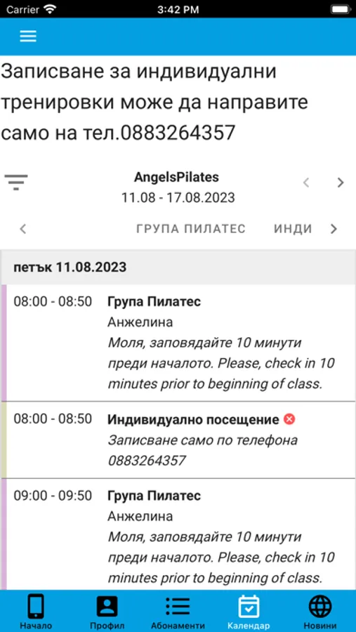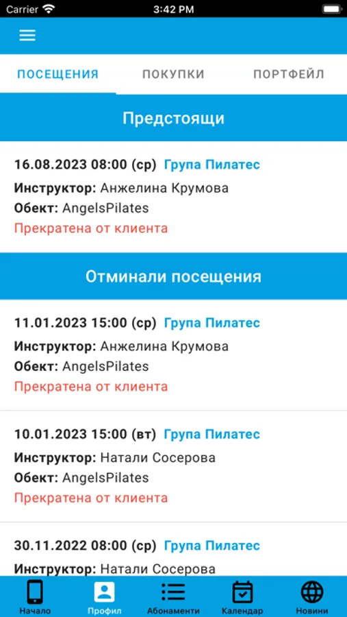 Клиентите могат да правят резервации за събития, да следят посещенията и абонаментите си и да получават нотификации.