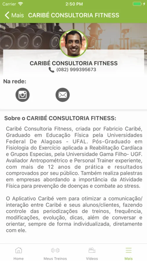 O Aplicativo Caribé vem para otimizar a comunicação/interação entre Caribé e seus alunos/clientes, fazendo controle das periodizações de treinos, frequência, modificações, evolução, dicas, além de conversar e orientar, sempre de forma individualizada, diretamente com ele.