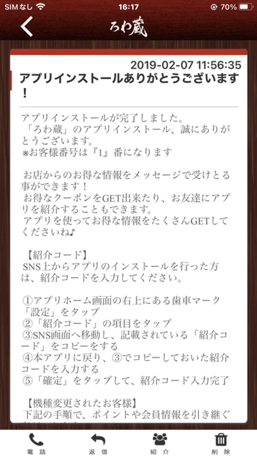 ろわ蔵のアプリをSNSを通じてお友達に紹介する事ができます。