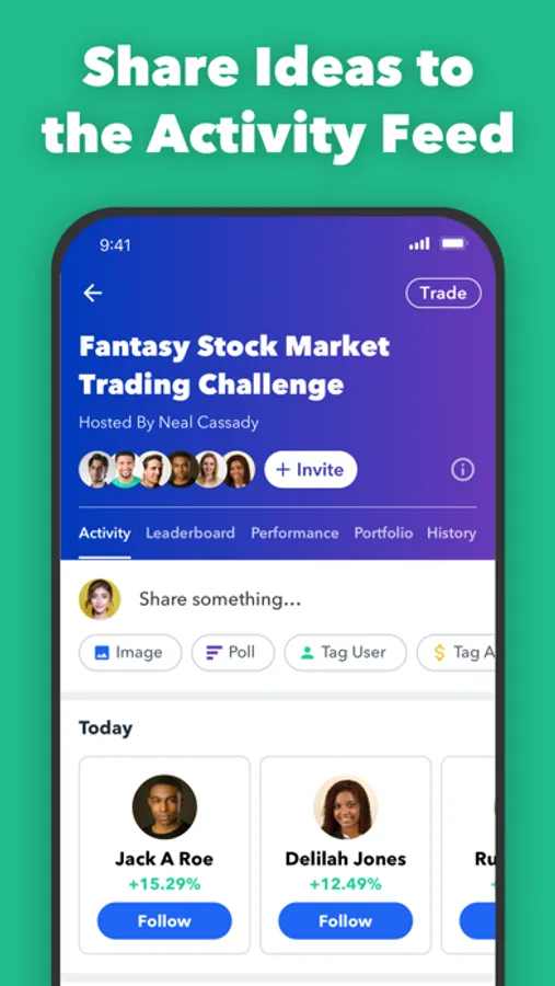 Invite your friends and follow other users. Post and share ideas with your friends and followers in the activity feed.