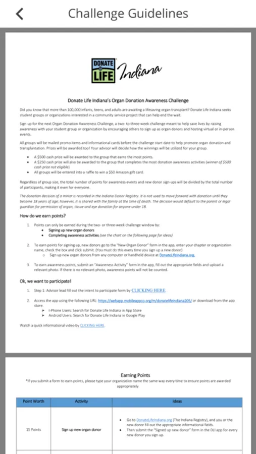 Help raise awareness about organ, eye and tissue donation in your community by participating in high school and college app challenges put on by Donate Life Indiana. Help save lives by educating and encouraging others to become organ, eye and tissue donors at www.DonateLifeIndiana.org or when they go to the BMV.