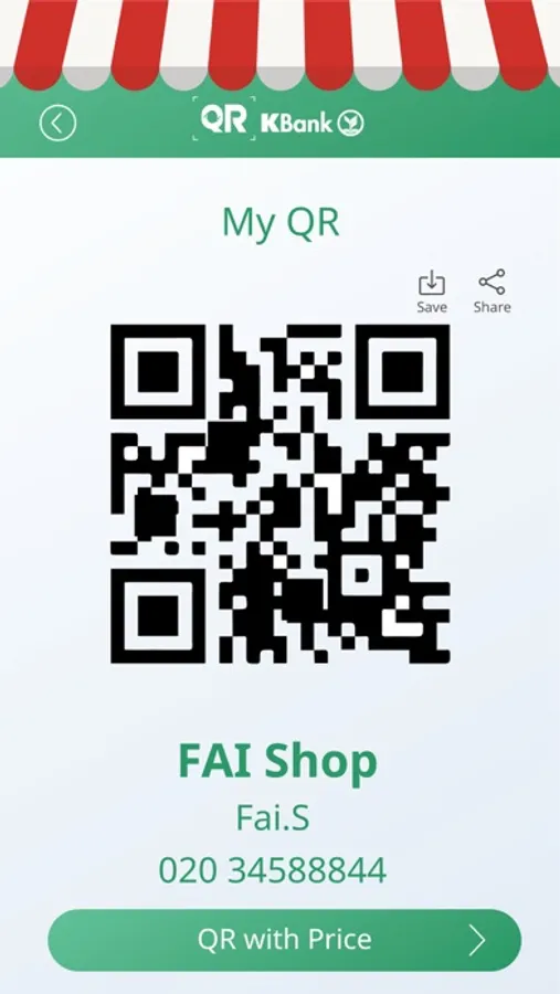 *Create QR code to receive QR Code payment from QR KBank application. No need to count, re-count and carry cash for a change!!!