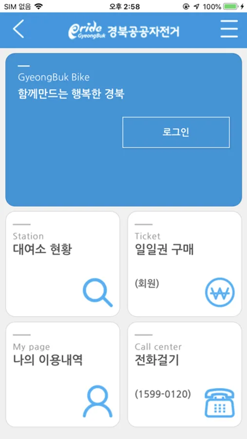 경북도청신도시에서 운영하는 공영자전거 전용앱으로 회원가입 및 이용권구매, 대여, 반납, 스테이션 확인 등이 가능합니다.