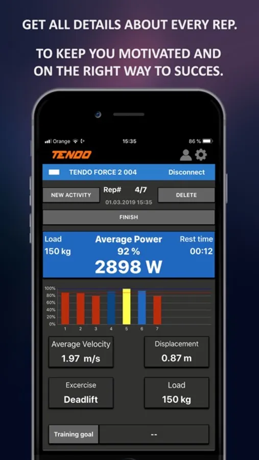 No more subpotential performances! Don't waste your time on inefficient traning. Unlock your full potential, push your athletic performance even further and get the results you've always dreamed off faster than ever. It's all easily achievable with our new Tendo MyUnit app through measurement of your power output and bar speed in training and testing. Just pair your Tendo MyUnit with your wireless Tendo Unit sensor and start working out. Join the top athletes and sports professionals who have trusted Tendo Unit to maximise their performance for over 17 years!