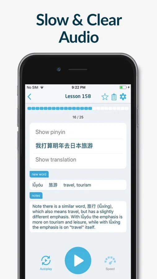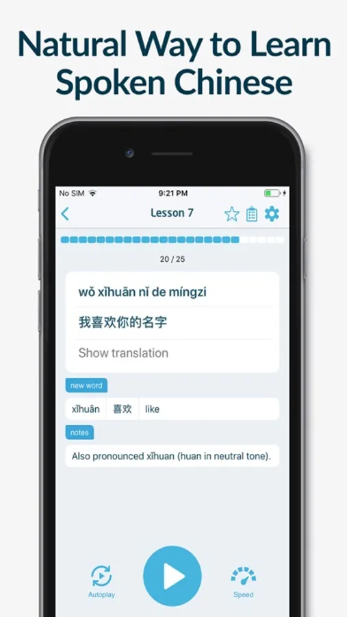 Immersive Chinese is a simple but effective method for learning practical spoken Mandarin Chinese. No gimmicks or time-wasting games, Immersive Chinese uses meticulous course design and high-quality audio to provide the best way to learn spoken Chinese from scratch.