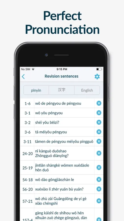 • Each line of text (translation, pinyin or Chinese characters) can be individually revealed and hidden.