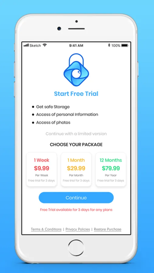 1 week auto renewal plan with 3 days free trial which will cost you $9.99/week only.