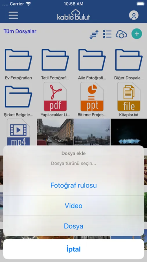 Kablo Bulut iOS uygulaması, kullanıcıların bulut ortamında, depolama alanları ölçüsünde dosyalarını saklayabileceği, istediği dosyaları başkalarıyla paylaşabileceği ve dış ortamdan erişilebilen bağlantılarla şifreli veya şifresiz olarak paylaşımlar oluşturabileceği bir dosya barındırma uygulamasıdır.