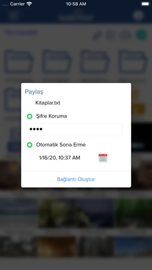 · Dosyalarınız için paylaşma linki oluşturabilir, bu linklere şifre ve geçerlilik süresi ekleyebilirsiniz.