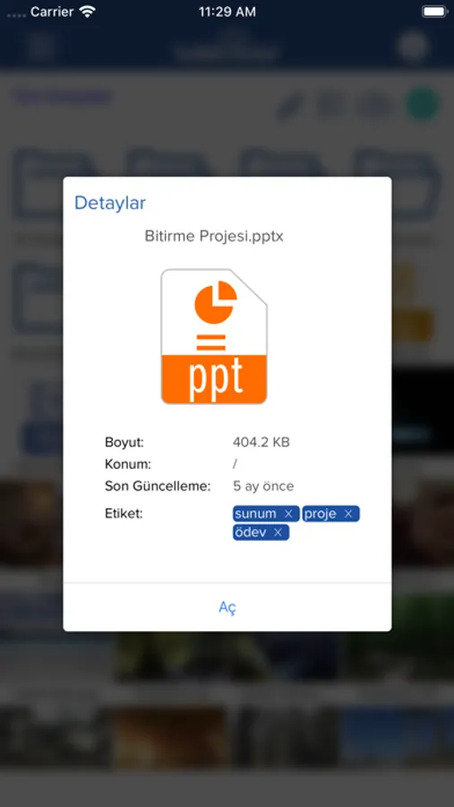 · Dosyalarınızın detaylarını görüntüleyebilirsiniz.