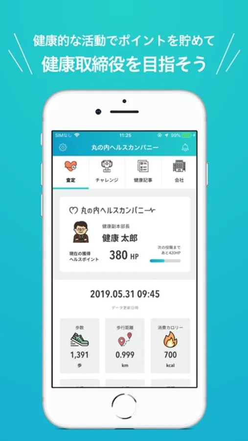 歩数や体重の計測、ヘルシーな食生活・イベントの参加など、健康的な活動をすればするほど、どんどん役職が上がり、昇進していくフェアな会社です。