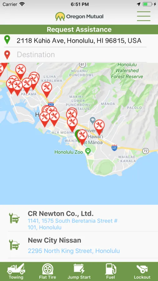 Oregon Mutual Roadside Assistance is available when you need it. Download this application to request assistance, and we will send a Service Provider to your location.