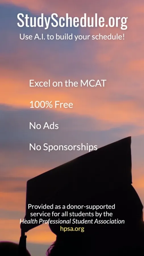 Donor-supported by the Health Professional Student Association members, StudySchedule.org is 100% free for all students.