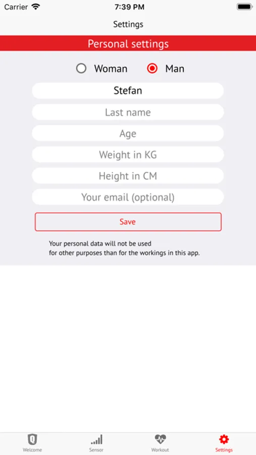 All your workout data is stored on your own phone.