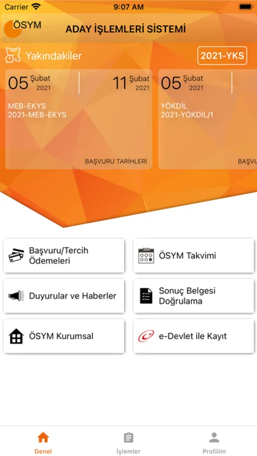 ÖSYM Mobil Aday İşlemleri Sistemi